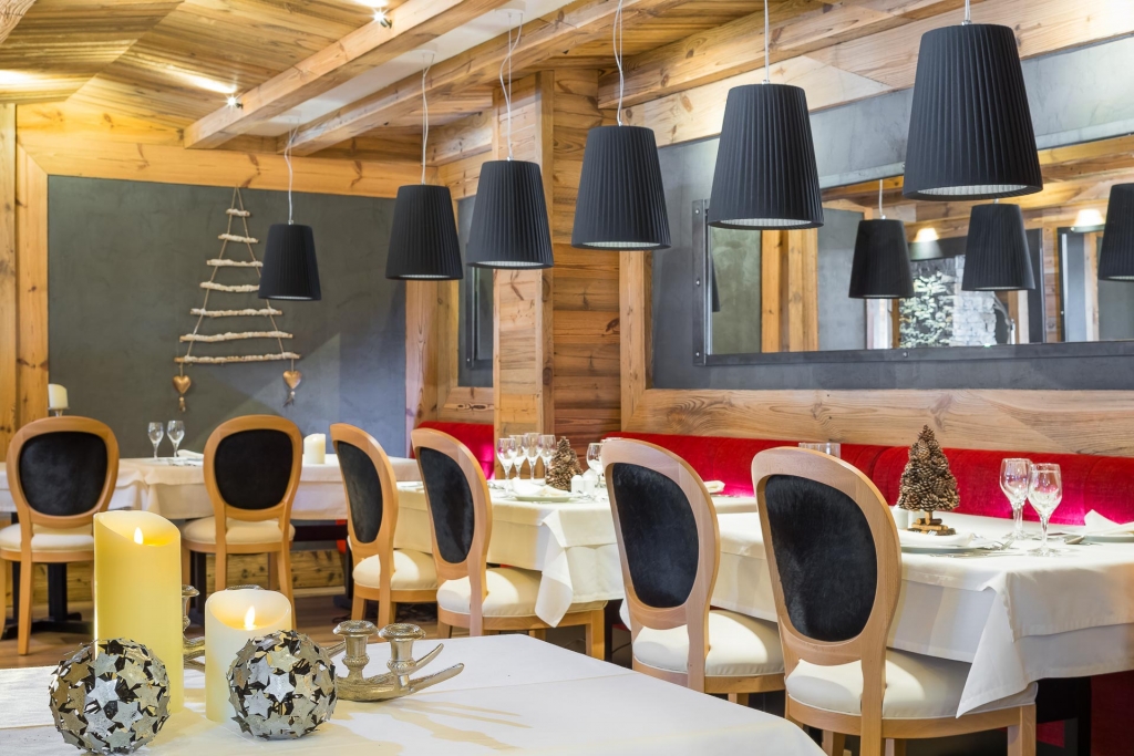 Hotelli interjöör on autentne, seal on kasutatud rohkelt puitu ja looduskivi, mille kooslus loob hubase alpistiili.